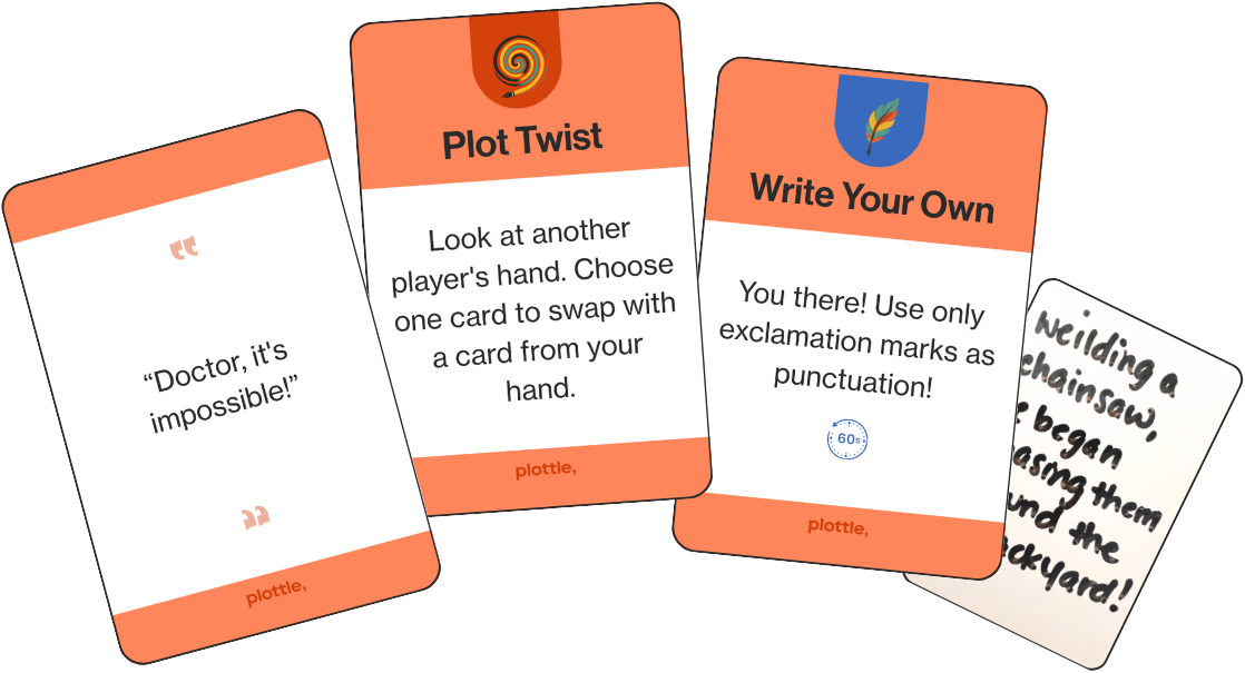 Each round’s rotating narrator and judge (the Plotkeeper) selects the winning line. Beware: every Plotkeeper has their own agenda.